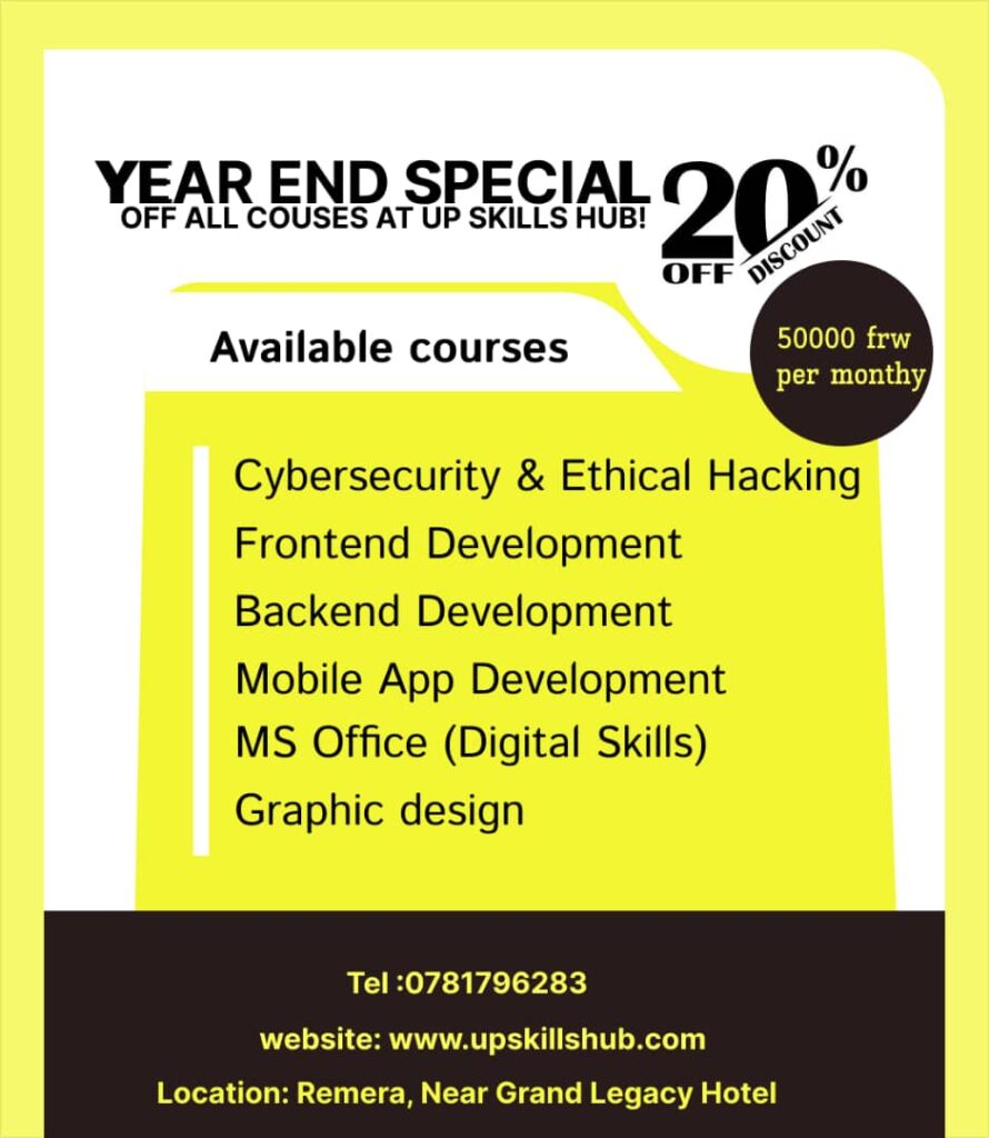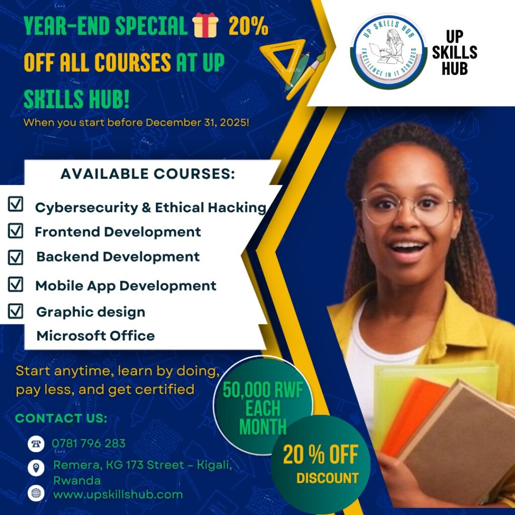 Up Skills Hub is a youth-focused training center based in Kigali. It offers practical programs in IT, software development, and digital skills. The hub helps young people gain experience and prepare for jobs or start their own projects.